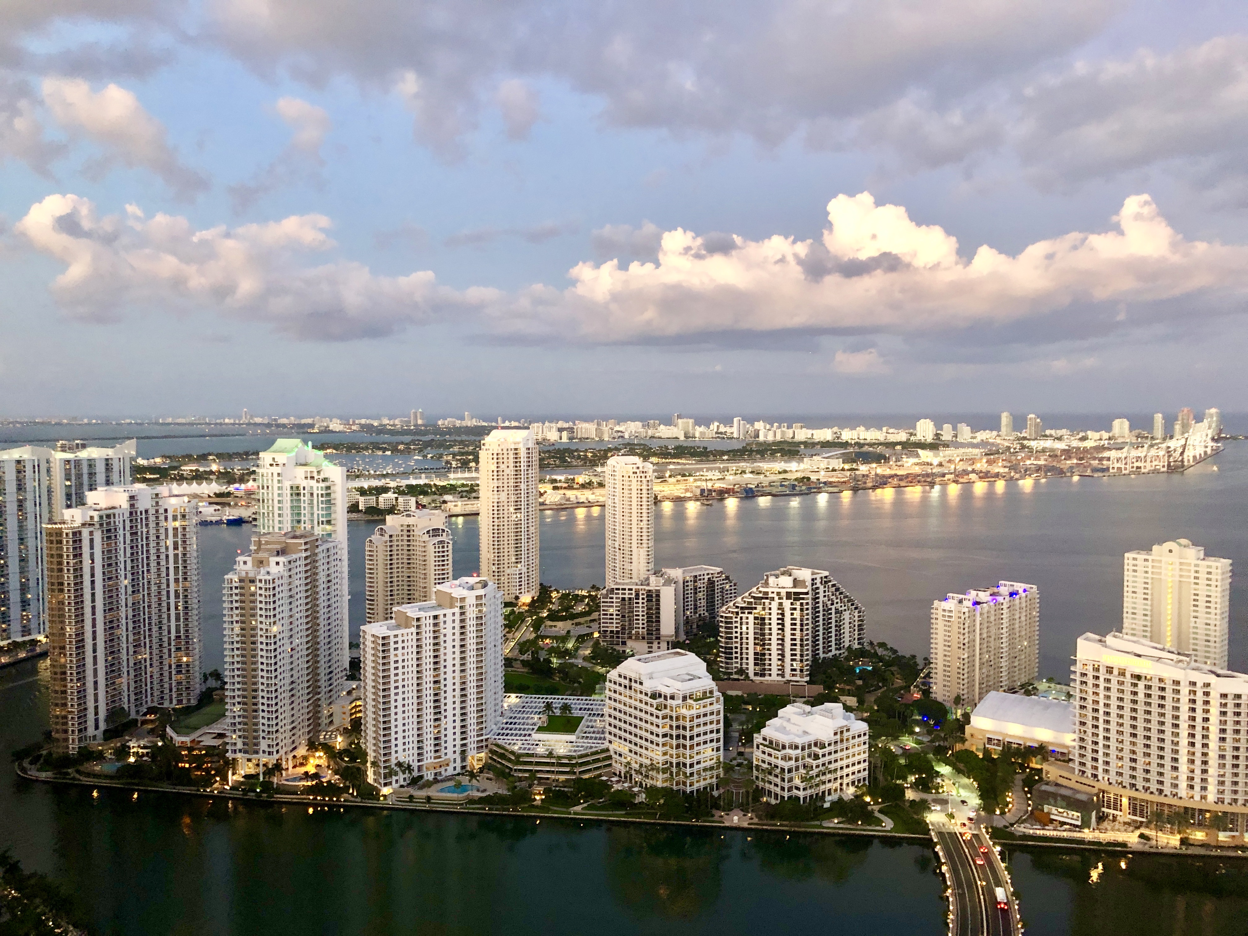 The themes are: Bahamian buildings, the Miami skyline, tropical foliage, sunsets, starfish, refreshing beverages and the ocean.